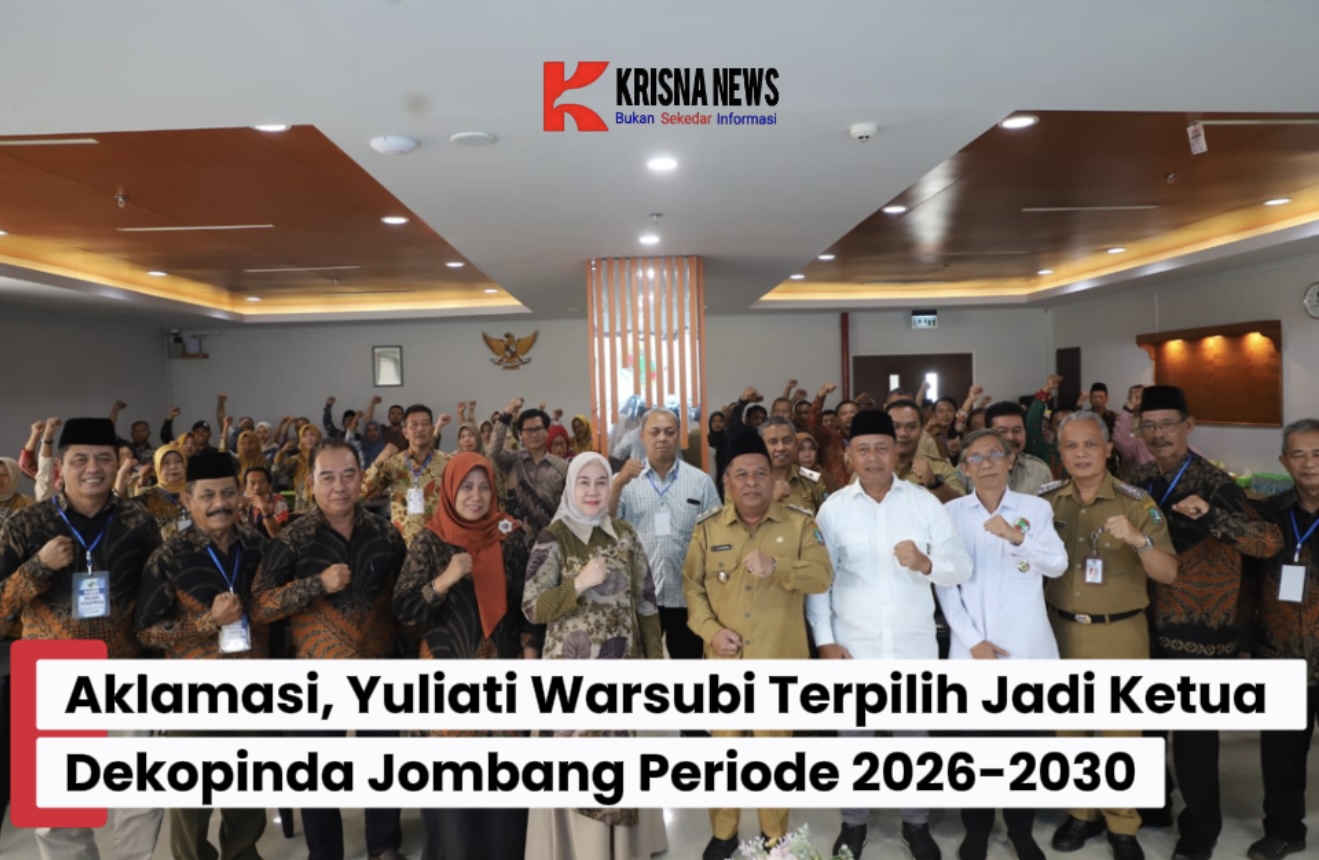 Krisnanews.idJombang – Dewan Koperasi Indonesia Daerah (Dekopinda) Kabupaten Jombang sukses menggelar Musyawarah Daerah (Musda) tahun 2026 pada Selasa (10/02/2026). Dalam forum tertinggi insan koperasi tersebut, Yuliati Nugrahani Warsubi Ketua Tim Penggerak PKK Kabupaten Jombang, terpilih secara aklamasi sebagai Ketua Dekopinda Kabupaten Jombang untuk periode 2026-2030.
