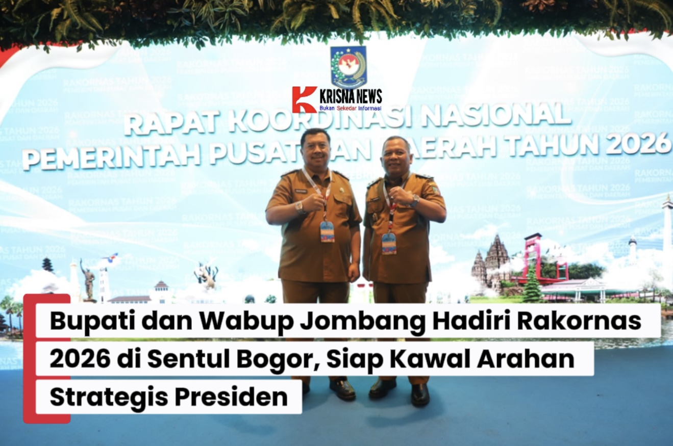 Krisnanews.idJombang – Bupati Jombang, Warsubi bersama Wakil Bupati Salmanudin dan jajaran Forkopimda Kabupaten Jombang menghadiri Rapat Koordinasi Nasional (Rakornas) Pemerintah Pusat dan Daerah Tahun 2026 di Sentul International Convention Center (SICC), Senin (02/02/2026).