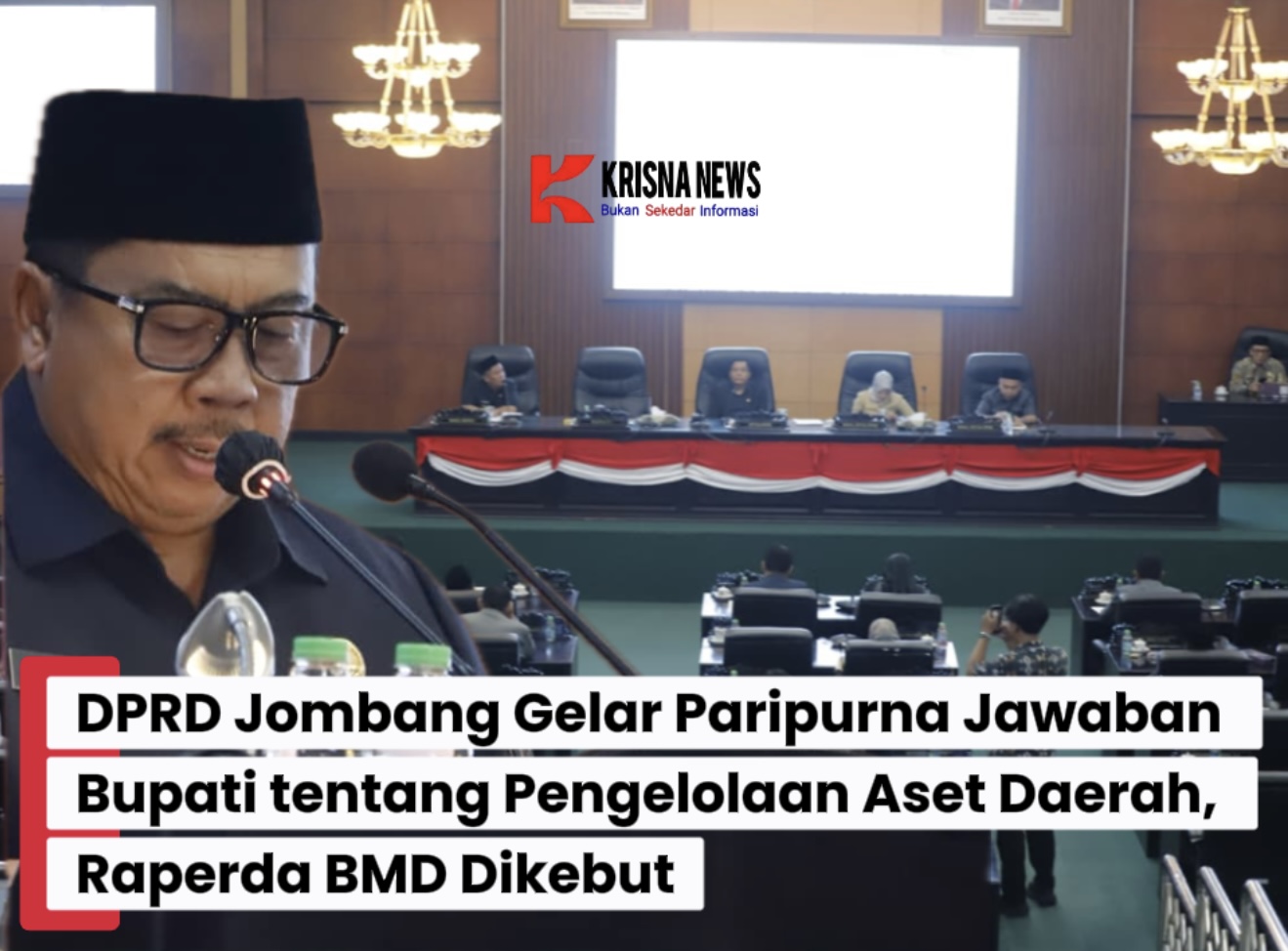 Krisnanews.id – Jombang – Rapat Pembahasan Rancangan Peraturan Daerah (Raperda) tentang Pengelolaan Barang Milik Daerah (BMD) terus dikebut. Terbaru, sudah memasuki tahapan agenda jawaban Bupati Jombang atas pandangan umum fraksi-fraksi DPRD Jombang dalam rapat paripurna, Kamis (12/02/2026).