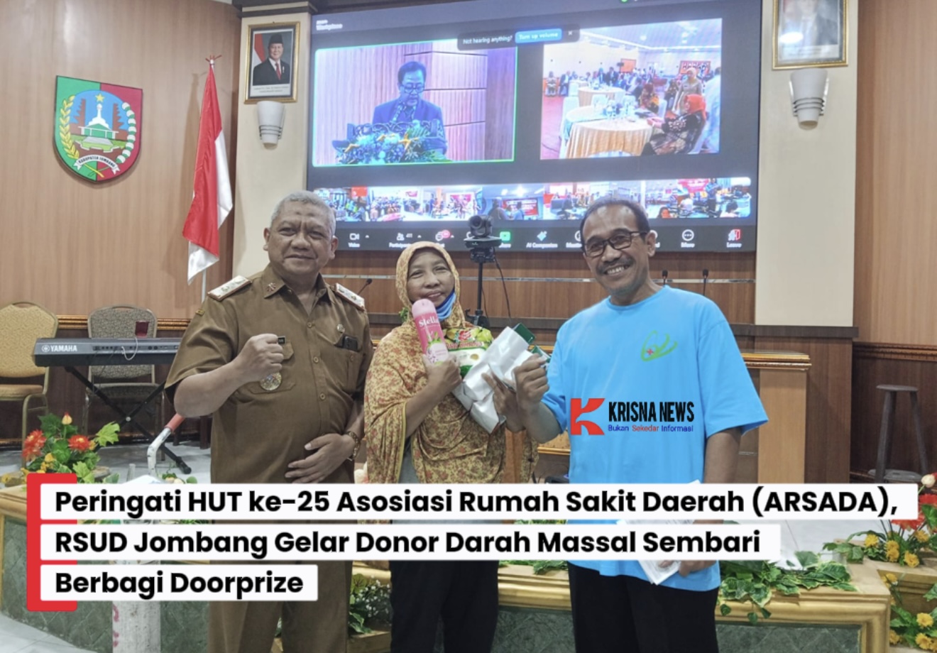 Krisnanews.id – Jombang – Dalam rangka memperingati Hari Jadi ke-25 Asosiasi Rumah Sakit Daerah (ARSADA), RSUD Kabupaten Jombang menggelar acara sosial berupa donor darah secara massal di ruang Bung Hatta kompleks gedung RSUD setempat, Senin Pagi (03/11/2225).