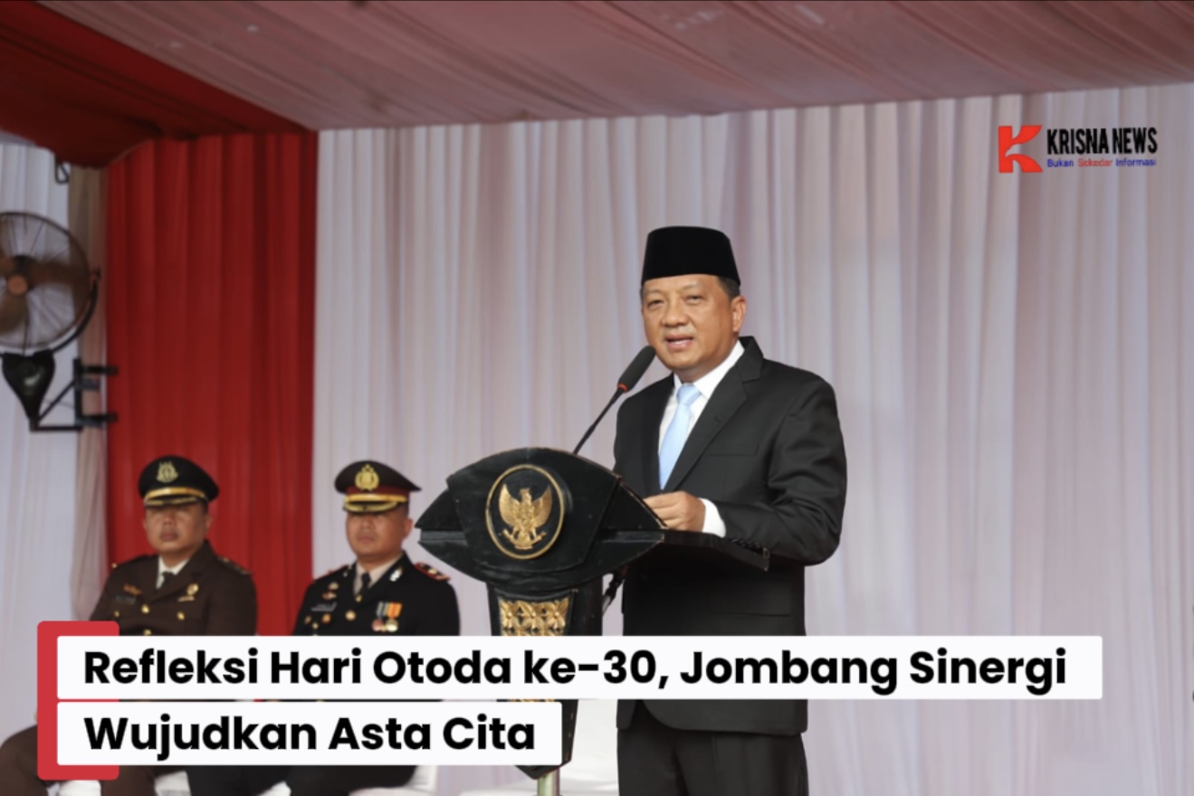Krisnanews.id – Jombang – Pemerintah Kabupaten (Pemkab) Jombang mendukung sinergi antara pemerintah pusat dan daerah sebagai pondasi untuk mewujudkan pembangunan nasional menuju Asta Cita. Penegasan itu disampaikan Sekdakab Jombang Agus Purnomo saat membacakan sambutan Menteri Dalam Negeri (Mendagri) pada Upacara Peringatan Hari Otonomi Daerah ke-30 Tahun 2026 di lapangan Pemkab Jombang, Senin (27/04/2026) pagi.
