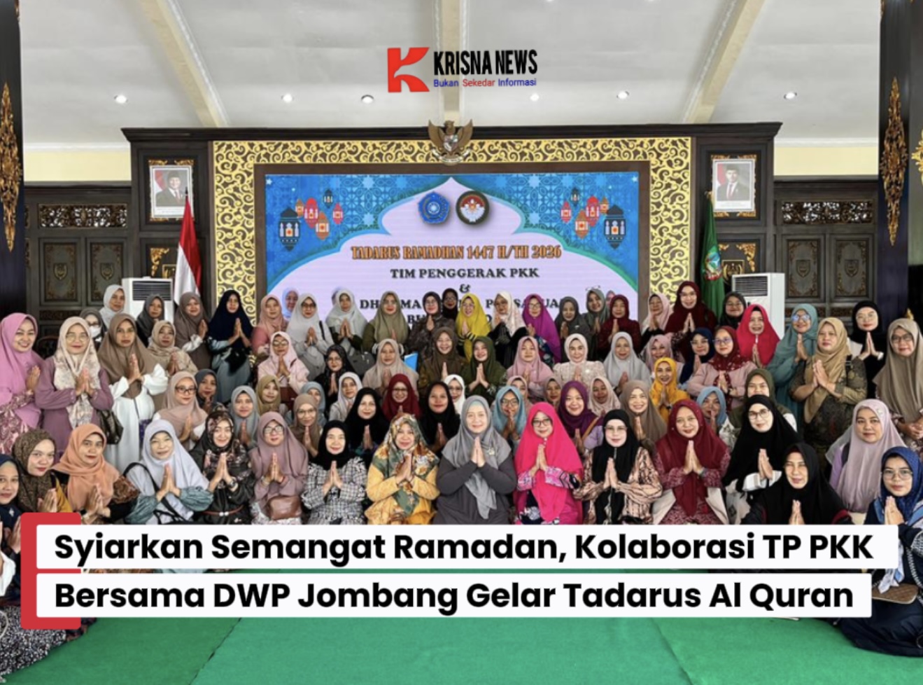Krisnanews.idJombang – Sinergi antara Tim Penggerak PKK Kabupaten Jombang dan Dharma Wanita Persatuan (DWP) Kabupaten Jombang dalam mengisi kemuliaan bulan suci kian terasa melalui program Tadarus Ramadan 1447 H/2026 M. Sejak resmi dibuka pada Senin (23/02/2026) di Pendopo Kabupaten Jombang, kegiatan tersebut terus dilaksanakan secara istiqomah oleh segenap pengurus dan anggota hingga dijadwalkan berakhir pada 13 Maret 2026 mendatang.