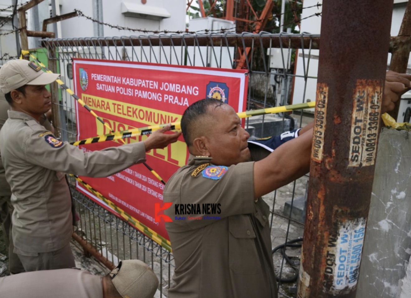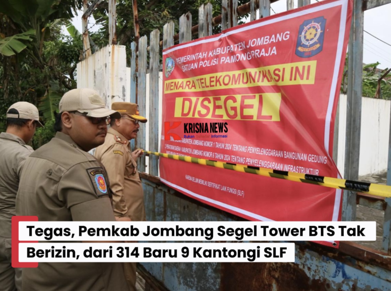 Krisnanews.id – Jombang – Pemerintah Kabupaten (Pemkab) Jombang melakukan penyegelan terhadap sejumlah tower Base Transceiver Station (BTS) yang belum mengantongi Sertifikat Laik Fungsi (SLF) pada Senin (02/03/2026). Langkah tegas tersebut merupakan bagian dari penertiban administrasi dan pengawasan bangunan menara telekomunikasi di wilayah Kabupaten Jombang.